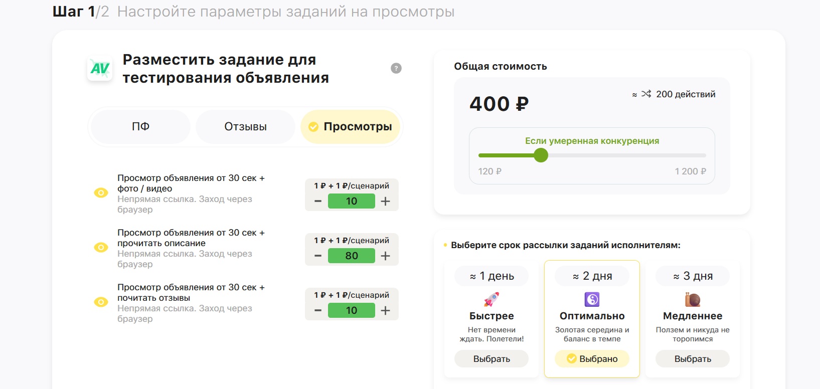 Большой выбор заданий с гибкой настройкой по срокам выполнения и указанием количества каждой отдельной услуги в едином заказе
