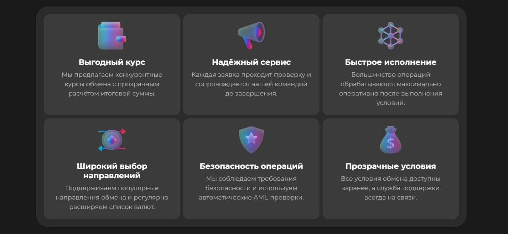 - Большой выбор направлений обмена и регулярное пополнение списка валют